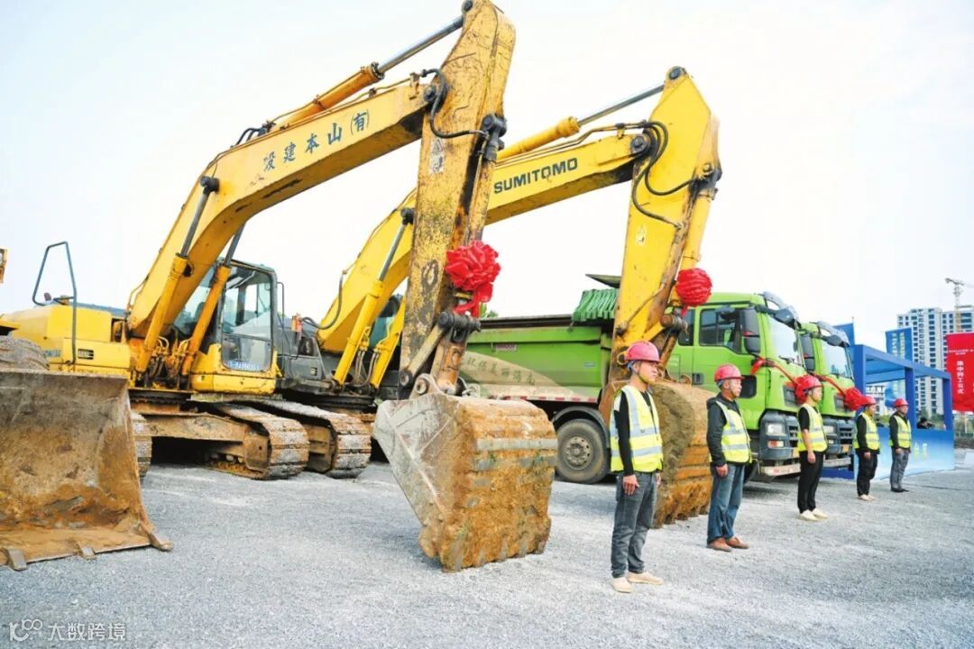 3月13日,海口市2024年第一批重大项目集中开工仪式举行。图为开工仪式现场,工程车蓄势待发,工人精神抖擞。海口日报记者 张俊其 摄