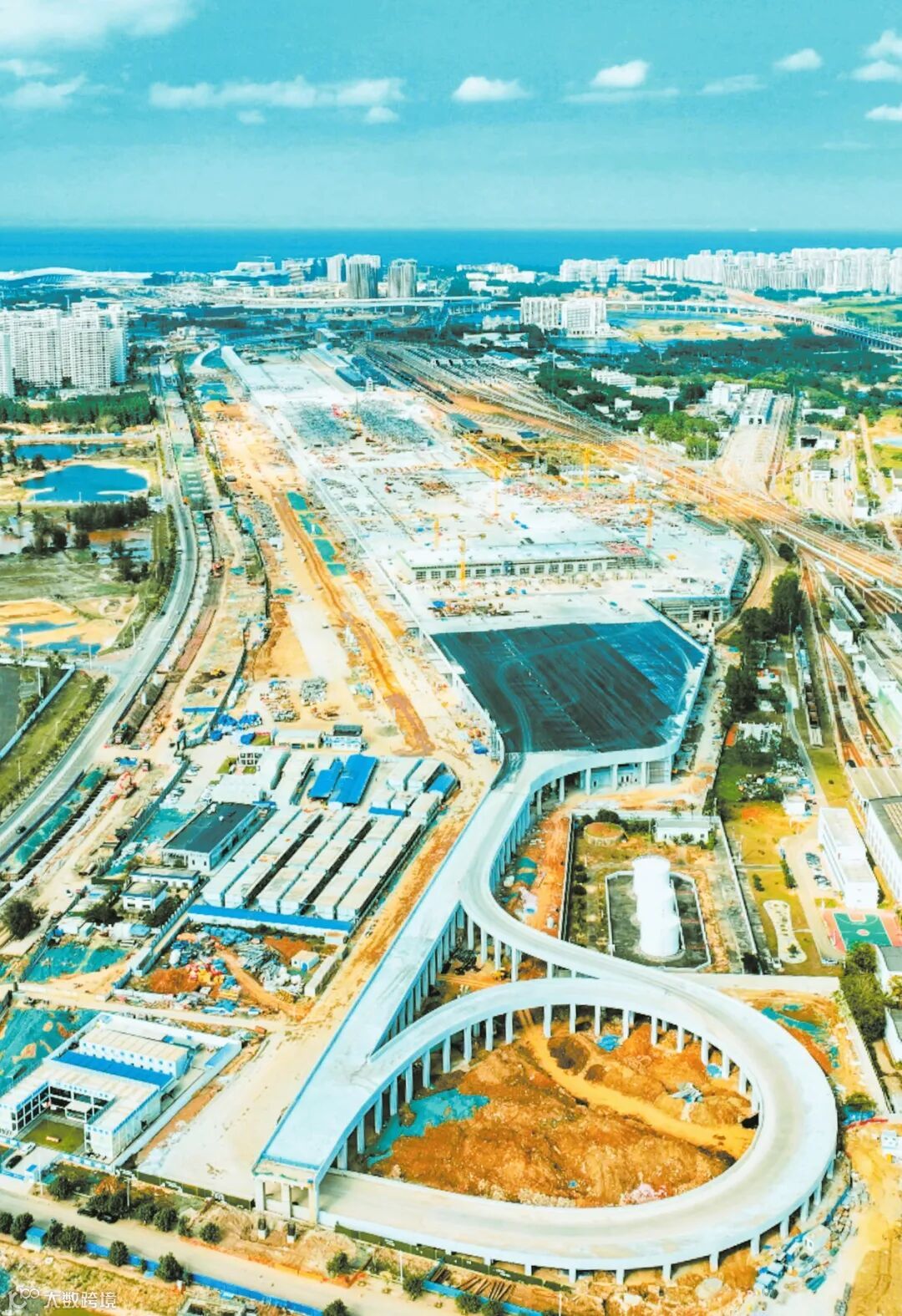 俯瞰正在加快建设的海口新海港和南港“二线口岸”(货运)集中查验场所建设项目。本报记者 康登淋 摄