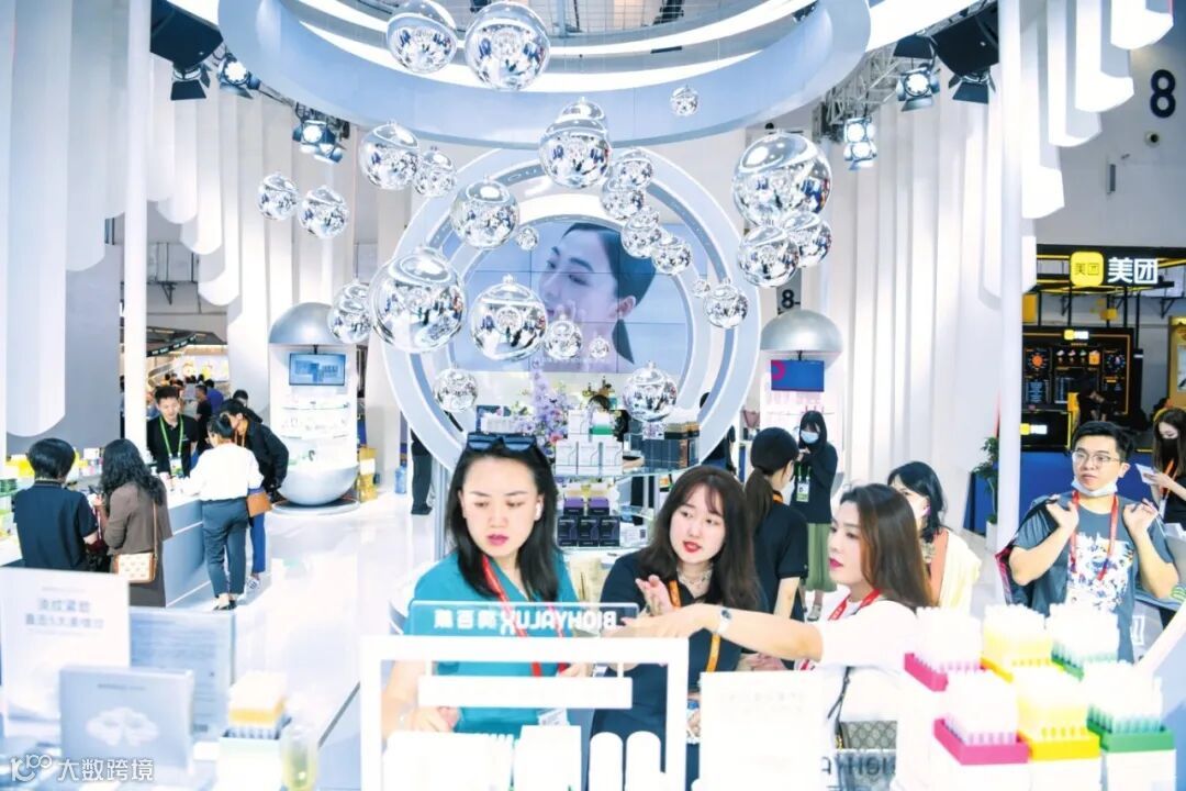 2023年4月11日,在第三届消博会上,华熙生物充满设计感的展台向消费者展现了国货品牌的卓越风采。海口日报记者 康登淋 摄