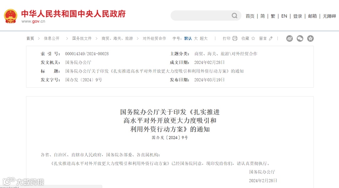 近日,国务院办公厅印发《扎实推进高水平对外开放更大力度吸引和利用外资行动方案》,提出5方面24条措施,指出要在营造环境、改善服务方面下更大功夫,把外商投资企业关心的实际问题作为突破口,善于用创新性思维解决矛盾问题。其中提到,支持有条件的自由贸易试验区、海南自由贸易港立足国情,对接国际高标准经贸规则,率先探索实施世界贸易组织服务贸易国内规制、投资便利化、数字贸易等领域谈判成果。