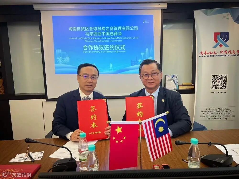 ↑2023年11月28日,全球贸易之窗与马来西亚中国总商会签署合作协议。(全球贸易之窗供图)