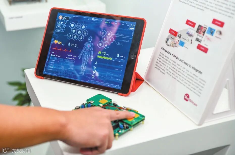 芯原微电子自主研发的新健康平台Verihealth,其传感器检测的数据可以在芯片内进行计算,并把结果通过蓝牙传输到平板电脑上。海口日报记者康登淋 摄