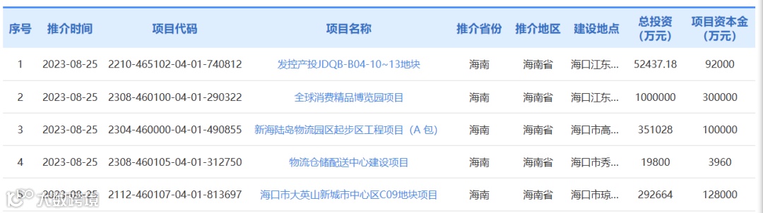 9月8日,为落实党中央、国务院决策部署,进一步激发民间投资活力,做好民间资本项目推介工作,根据《关于进一步抓好抓实民间投资工作 努力调动民间投资积极性的通知》(发改投资〔2023〕1004号)等要求,国家发展改革委通过统一的向民间资本推介项目平台,集中发布了一批重点项目,积极吸引民间资本参与。其中,在向民间资本推介项目平台中,海南共有59个重点项目入库获得公开推介,包含海口5个重点项目。