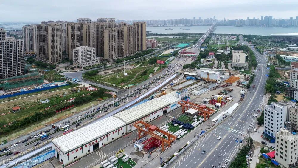 中铁十四局承建的广湛铁路湛江湾海底隧道盾构区间“过海穿城”(5月24日摄,无人机照片)。新华社记者 梁旭 摄