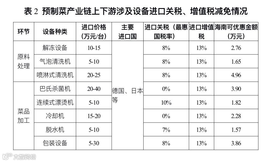 (三)自贸港“零关税”政策免除进口预制菜采购、加工、流通环节设备的关税、增值税,对预制菜产业链上下游企业形成投资成本利好