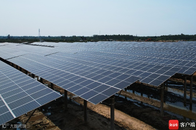大唐文昌光伏电站是海南单体容量最大的农光互补+储能示范项目。新海南客户端记者 吴岳文 摄