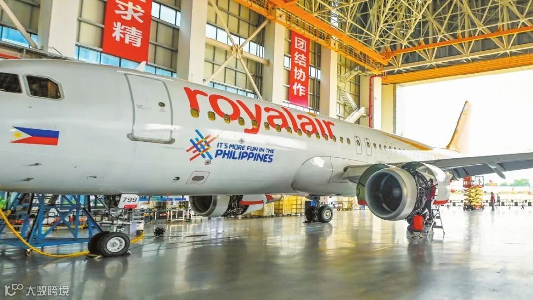 2022年10月29日,在海口空港综合保税区一站式飞机维修基地,工作人员正忙着专项维修菲律宾皇家航空的空客A320飞机。海口日报记者 石中华 摄