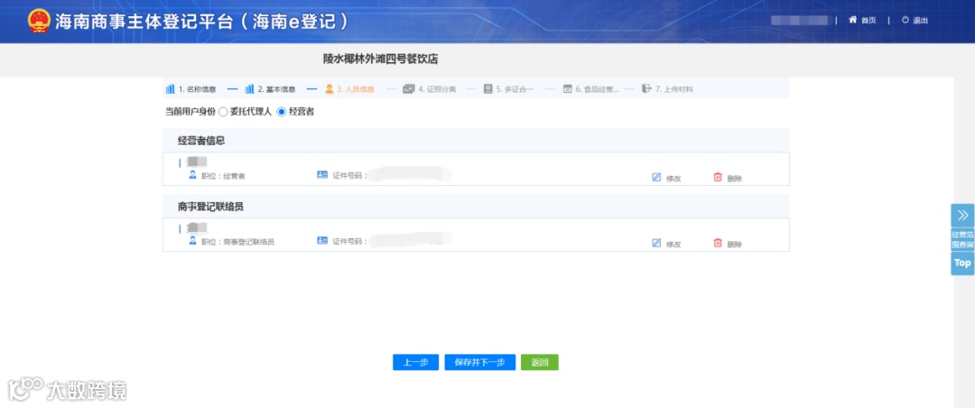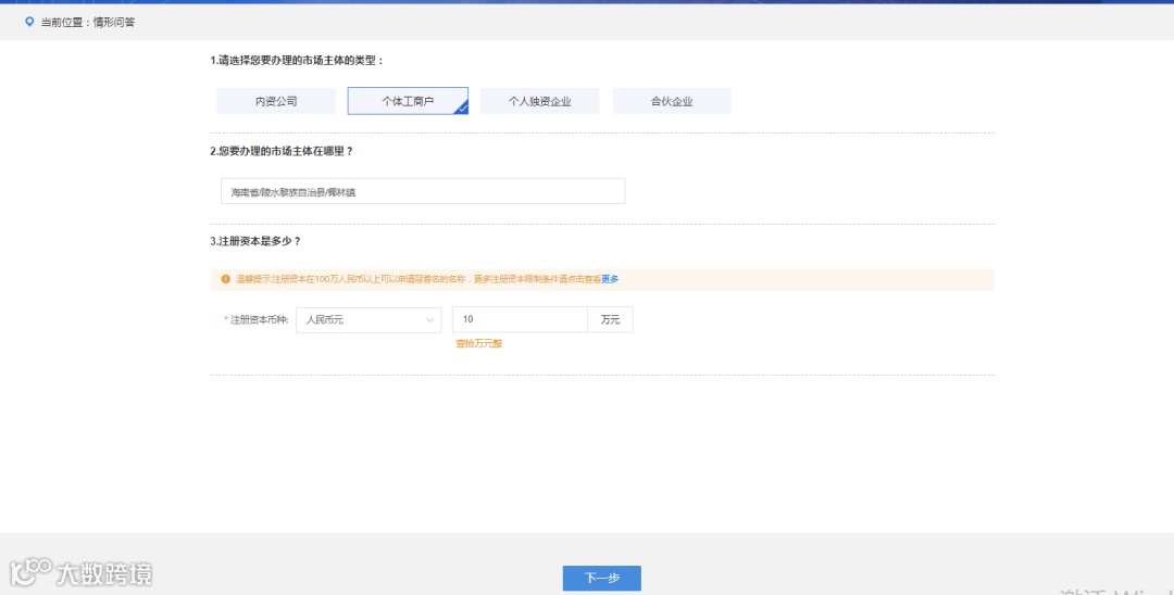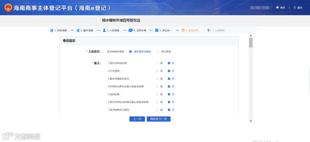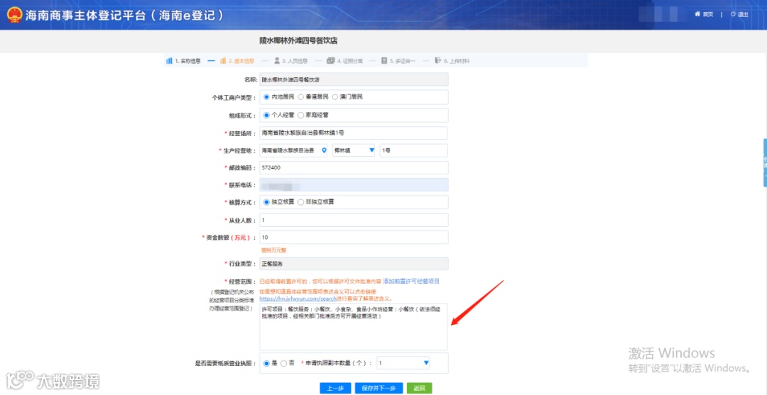 注意:经营范围的填写必须要涉及相关许可证的经营范围,若不涉及后面的流程带不出许可证信息填写界面