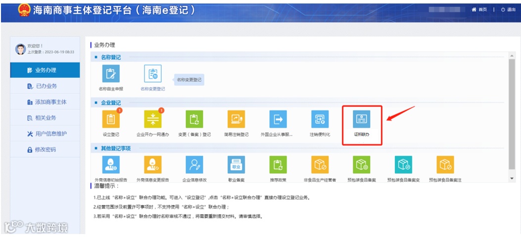 7月11日,在海南省营商环境建设厅、海南省大数据管理局的大力支持下,海南“证照联办”系统正式上线试运行,“证照联办”改革正式在全省铺开。