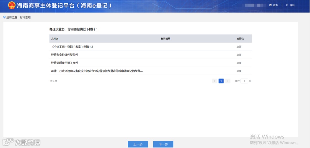4、进入材料告知界面,告知办理业务需要提供的材料