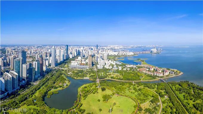 俯瞰海口市滨海大道、万绿园一带城市新貌。石中华 摄