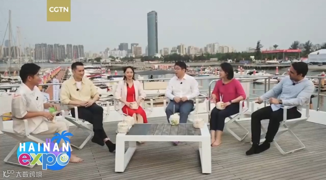 在直播中,来自CGTN的主持人郑峻峰、赵晨辰、Omar Khan、黄菲、唐博与三沙卫视主持人石少鹏,在“爱莎女神”号游艇上,与椰风海韵相伴,分享对第三届消博会新产品和消费新趋势的看法,畅谈海南游艇产业发展机遇。嘉宾们纷纷表示,海南游艇产业发展潜力巨大,机会众多,未来可期。
