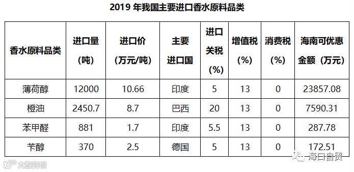 基于对我国香水原料品类进口相关数据调研,结合对海南自由贸易港保税政策及免税消费“前店后厂”模式给予进口环节关税、增值税、消费税减免的综合评估可知,海南自由贸易港对香水原料进口加工企业发展具有明显的经济性优势。