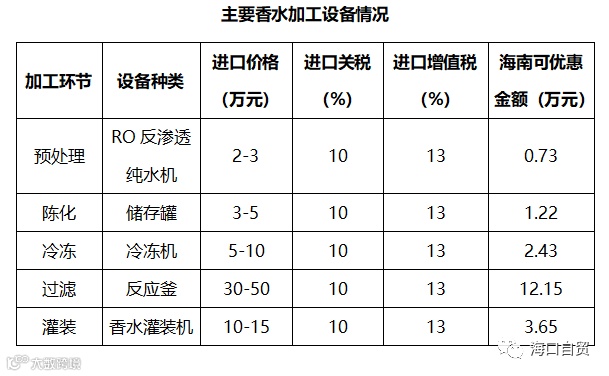 基于对目前我国主要香水加工制造设备进口价格的调研,结合对海南自由贸易港零关税政策下进口设备关税减免的综合评估可知,香水原料加工企业采购单套加工设备可实现约20.2万元(取香水原料加工制造设备进口价格区间的上限估算)成本降低,具有一定的经济性优势。