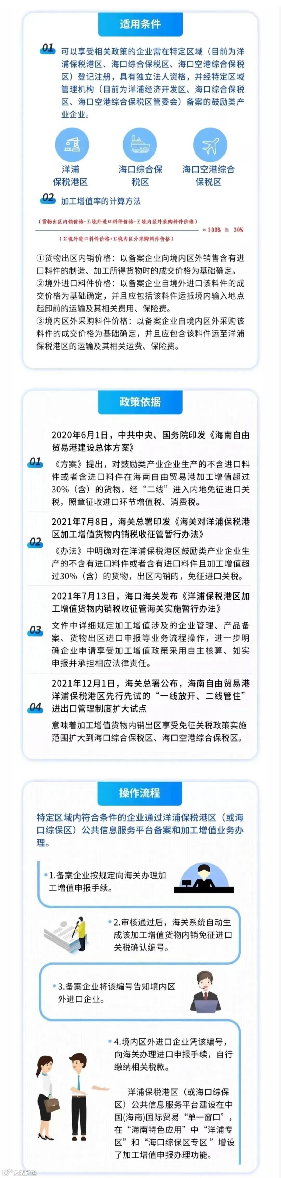 在海关总署等国家部委的大力支持下,加工增值政策率先在洋浦保税港区实施,并扩大至海口2个综保区。