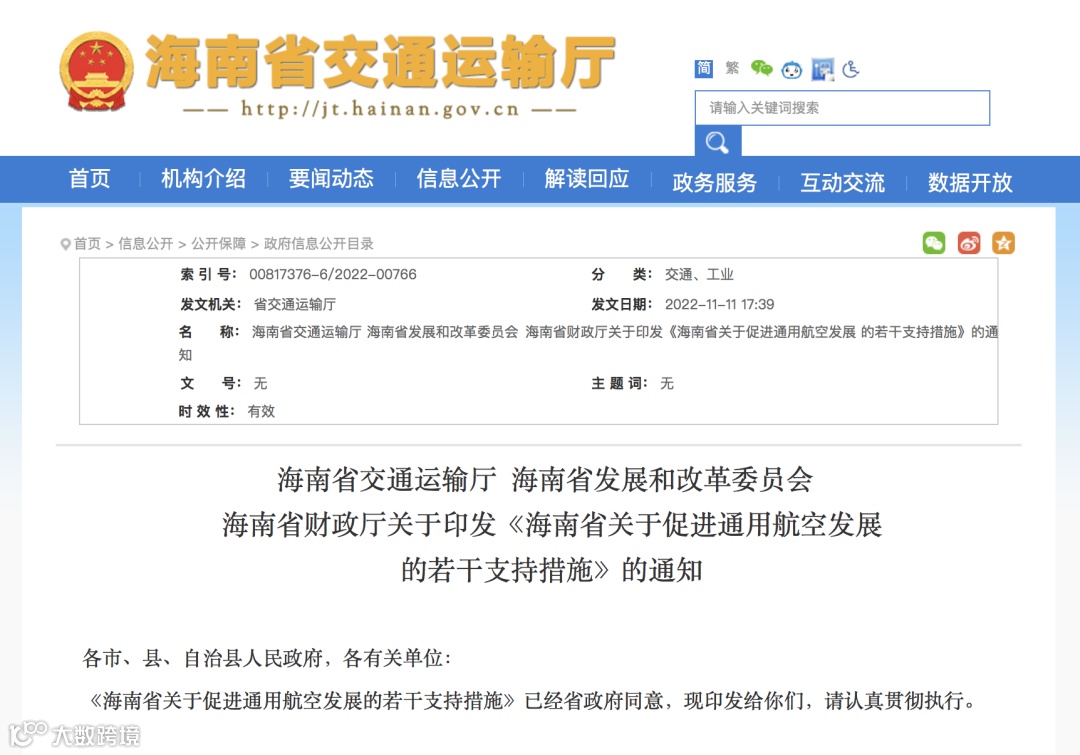 11月10日,海南省交通运输厅、省发展和改革委员会、省财政厅联合印发《海南省关于促进通用航空发展的若干支持措施》(以下简称《若干支持措施》),支持我省通用航空发展,助力海南自由贸易港建设。
