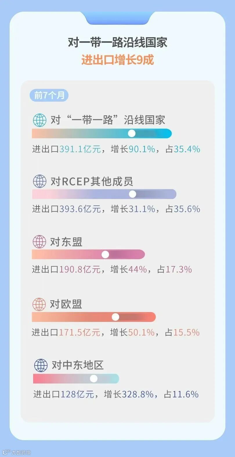 前7个月,海南对“一带一路”沿线国家进出口391.1亿元,增长90.1%。