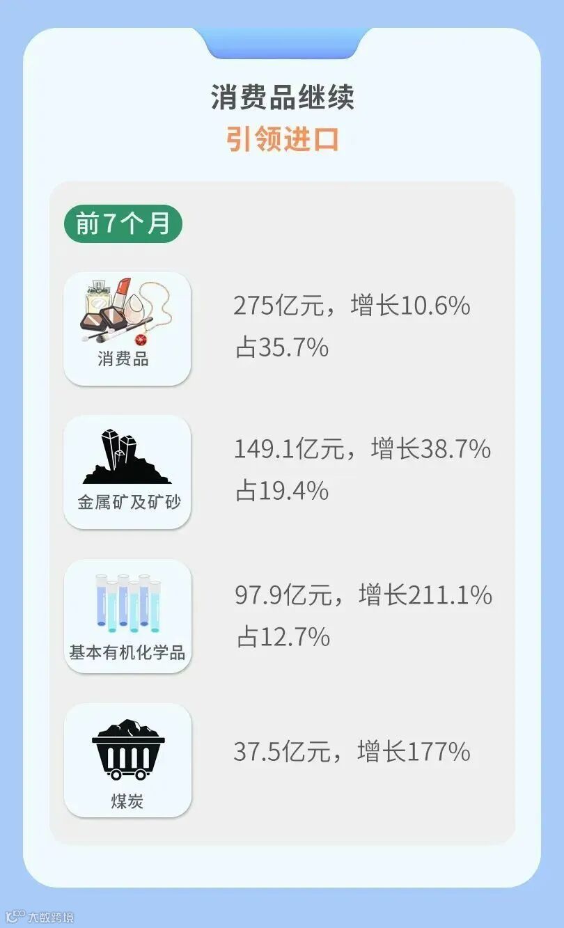 此外,前7个月,海南进口消费品275亿元,增长10.6%,占同期全省进口商品总值的35.7%。