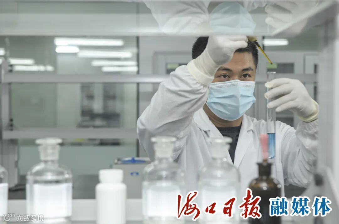位于海口国家高新区美安生态科技新城的海孵(海南自贸区)医疗科技有限公司理化室内,工作人员正在进行水质PH检测。海口日报记者 康登淋 摄