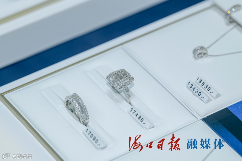 海口日月广场免税店内的钻戒。