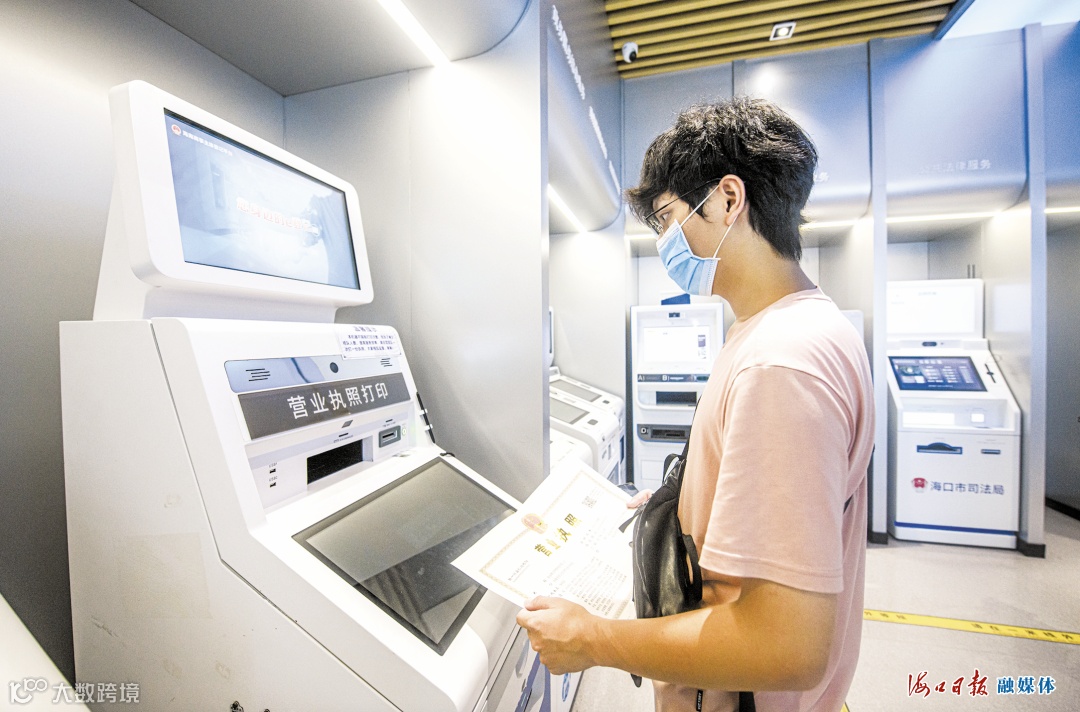 在海口市政府服务中心,一位市民正使用营业执照打印自助机。海口日报融媒体记者 陈长宇 摄