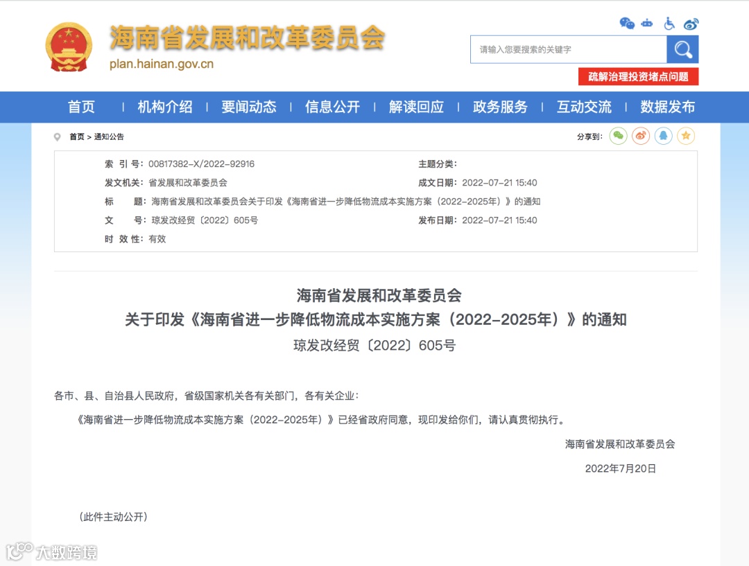 近日,省发展改革委出台《海南省进一步降低物流成本实施方案(2022-2025年)》(以下简称《方案》)指出,将经过三年多努力,建成1个省级物流园区和3个国家物流枢纽,港口和机场基础设施显著改善,完成数字化物流服务体系框架搭建,全省物流供给能力显著提升,航运航线网络进一步拓宽,多式联运能力明显加强,通关效率进一步提升,物流成本进一步下降,初步形成通达全球、服务全国的航运和航空物流服务网络体系,西部陆海新通道国际航运枢纽和航空枢纽初具规模,基本建成面向国内国际“两个市场”的“国家大仓库”。