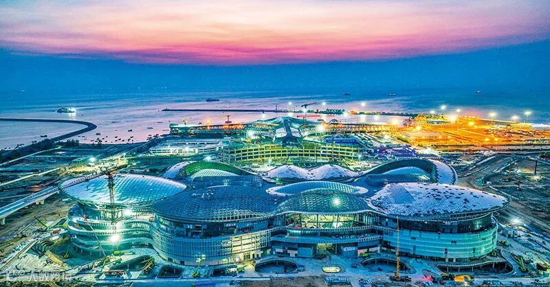 海南加快建设具有世界影响力的中国特色自由贸易港。图为2022年4月28日傍晚,在海口国际免税城项目施工现场灯火通明,场景“火热”。海口国际免税城项目总建筑面积约92.6万平方米,预计今年正式投入使用。海南省委宣传部供图 陈元才/摄