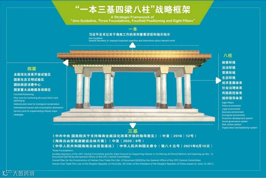 为高标准高质量落实好海南全面深化改革开放和中国特色自由贸易港建设这一重大国家战略,海南着力建设并不断完善政策环境、法治环境、营商环境、生态环境以及经济发展体系、社会治理体系、风险防控体系、组织领导体系,铸牢支撑发展的八根重要支柱。