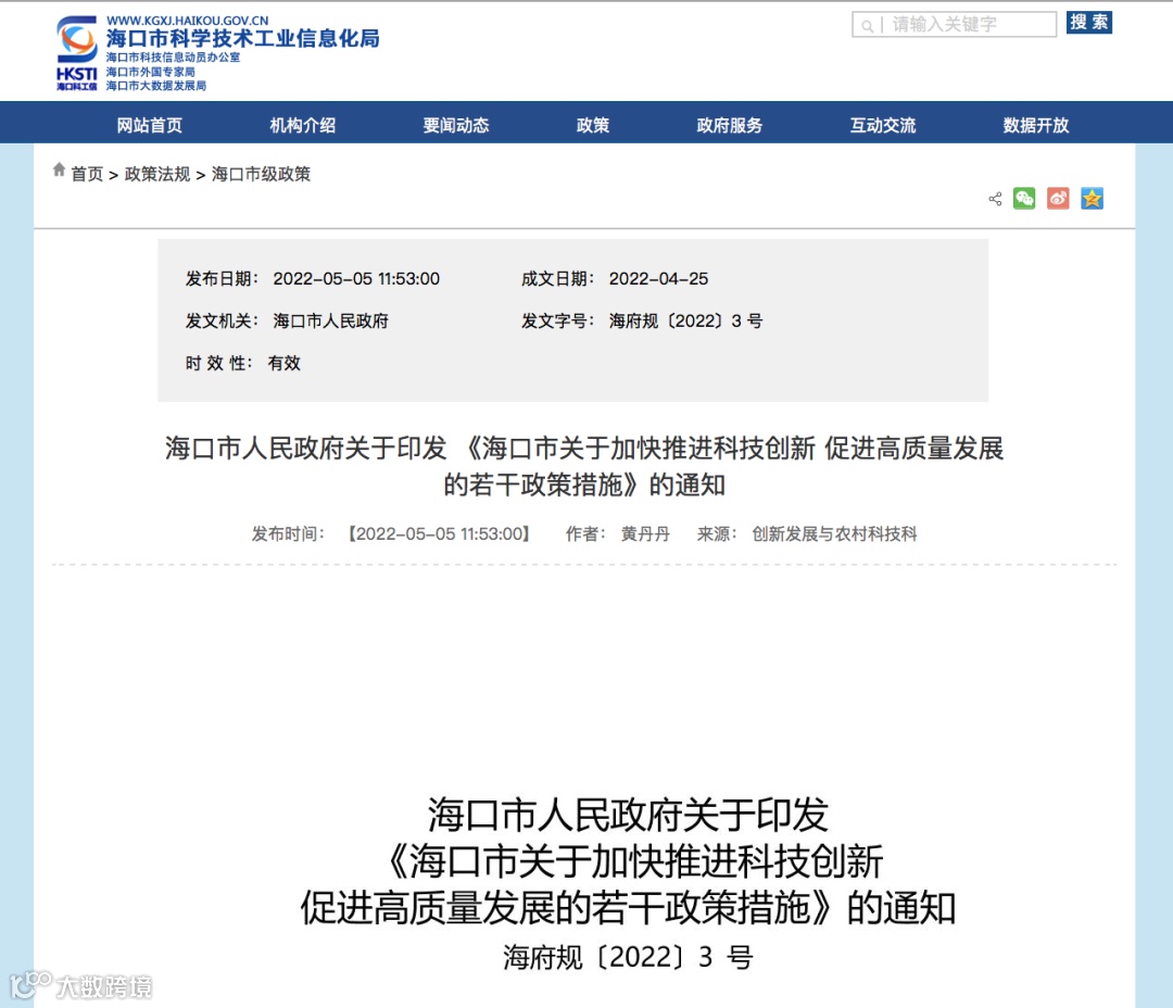 来源:海口国际投资促进局综合海口日报、海口市科学技术工业信息化局