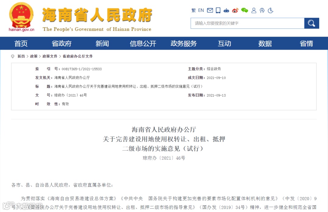 琼府办〔2021〕46号