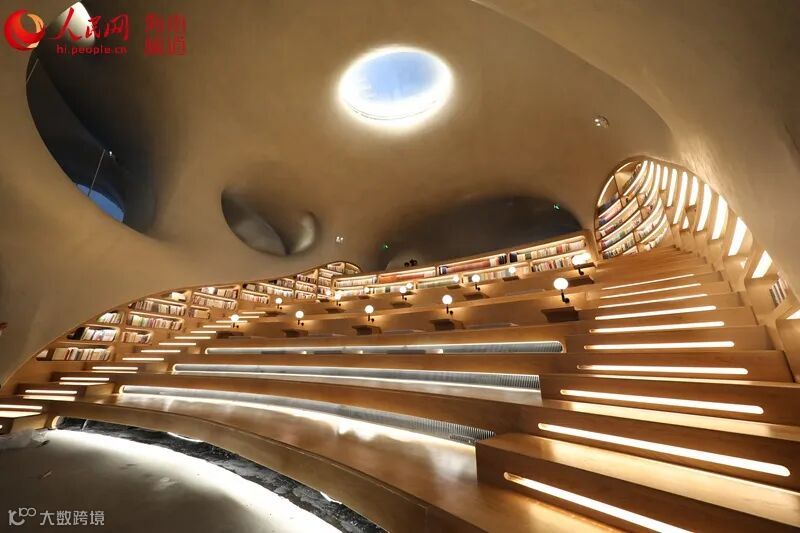 △云洞图书馆造型采用“洞”的概念,建筑面积约1400平方米,阅读空间690平方米。人民网 孟凡盛摄