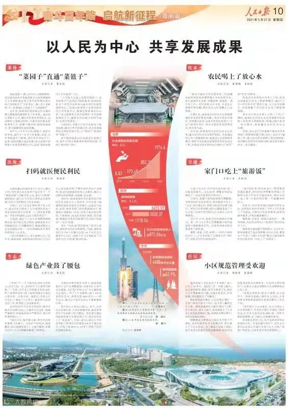 全面贯彻新发展理念,发展质量显著提升。在房地产调控、疫情影响和政策性财政减收等三重压力下,持续奏响练内功、转动能、引外力“经济转型三部曲”。在练内功上,以壮士断腕决心摆脱经济对房地产业的依赖,产业投资占比从不到40%上升至超过60%,经济增速超过全国平均水平,成功走出转型“阵痛期”。在转动能上,加快建立“3+1”现代产业体系,做好吸引境外高端购物、医疗和教育等三篇消费回流文章。成功举办首届中国国际消费品博览会,向世界展示了中国消费市场的巨大潜力。打造“陆海空”三大未来产业,“南繁硅谷”建设取得实质性进展,崖州湾种子实验室挂牌成立。在引外力上,着力引进外资和央企到海南投资兴业,实际利用外资连续3年翻番,央企及央企子公司在琼营业收入与2018年相比增长超20倍。去年主要经济指标好于全国平均水平,新设企业、引进人才、离岛免税购物等指标均实现翻番。今年一季度,全省地区生产总值同比增长19.8%,两年平均增速7%,增速均位列全国第二,固定资产投资同比增长20.3%,社会消费品零售总额同比增长61.6%,经济在恢复性增长中实现“开门红”。