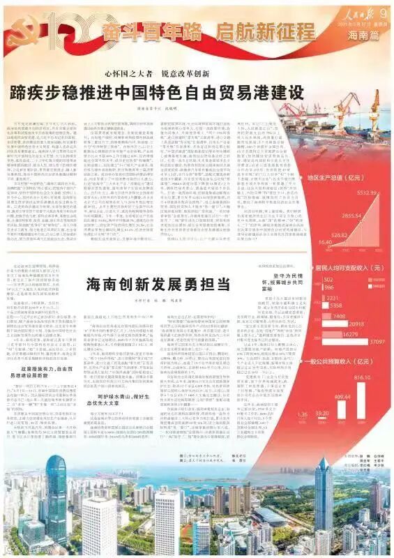 百年党史波澜壮阔,百年初心历久弥新。海南是我国最大的经济特区,具有实施全面深化改革和试验高水平开放政策的独特优势。建设海南自由贸易港,是习近平总书记亲自谋划、亲自部署、亲自推动的重大国家战略,对完善和发展中国特色社会主义制度、构建人类命运共同体具有重要意义。海南深入学习贯彻习近平新时代中国特色社会主义思想,大力弘扬艰苦卓绝、孤岛奋战、二十三年红旗不倒的琼崖革命精神和敢闯敢试、敢为人先、埋头苦干的特区精神,立足新发展阶段,贯彻新发展理念,融入新发展格局,推动中国特色自由贸易港建设顺利开局、蓬勃展开。