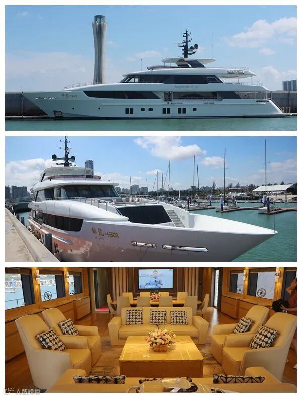 国内150尺的锦龙超级游艇已停靠码头