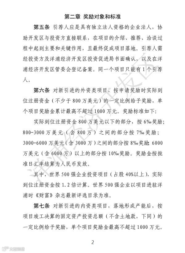 第六条对新引进的外资类项目,按申请奖励时实际到位注册资金(不少于800万美元)的一定比例给予奖励,单个项目奖励金累计最高不超过1000万元。