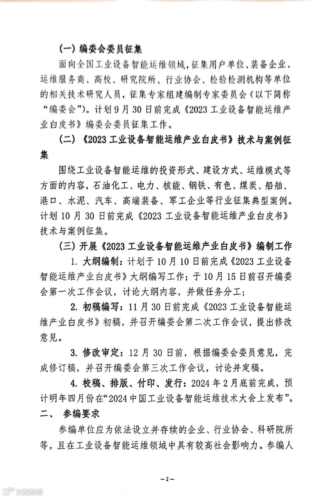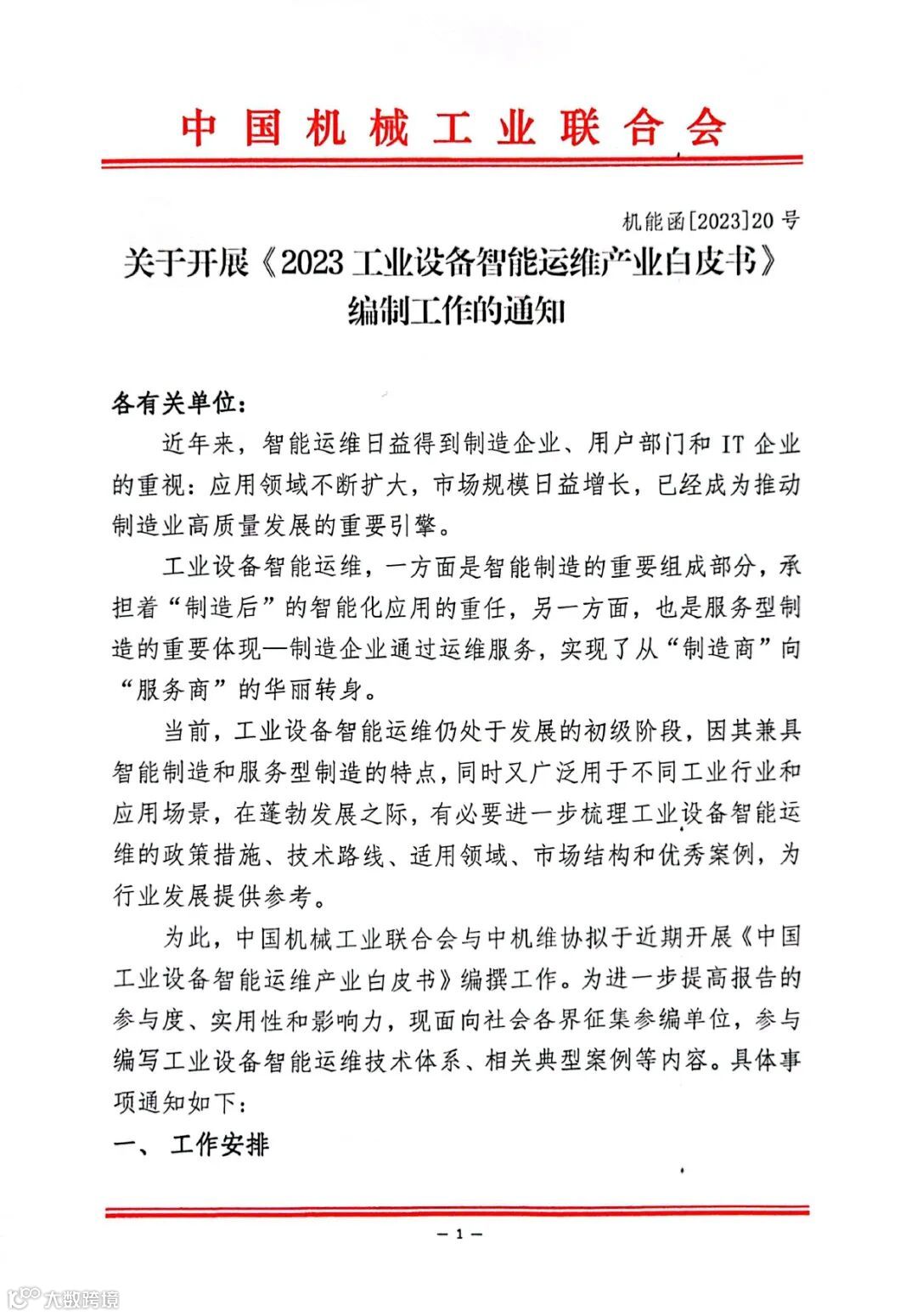 重磅!关于开展2023工业设备智能运维产业白皮书编制工作的通知