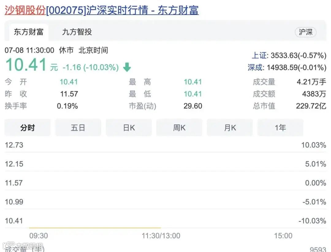 值得注意的是,在今年7月重组被证监会否决后,沙钢股份复牌后连续跌停,于7月8日-12日三个交易日内市值蒸发近70亿元。