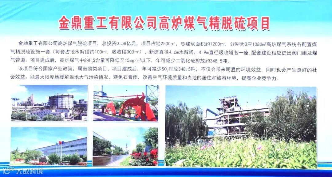 金鼎重工有限公司高炉煤气脱硫项目,总投资0.58亿元,项目占地2500㎡,总建筑面积约1200㎡,分别为3座1080m³高炉煤气系统各配置煤气精脱硫设施一套(每套占地水解段约100㎡,吸收段300㎡);新建直径4.6m水解塔,4.9m直径吸收塔各一座,配套建设相应进出阀门组及煤气管道。项目建成后,高炉煤气中的H2S含量可降低至15mg/m³以下,年可减少二氧化硫排放约348.5吨。