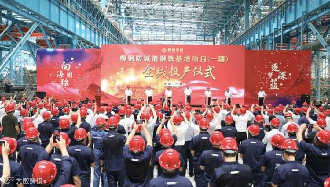 2020年6月28日,柳钢防城港钢铁基地项目1号高炉投产,(一期)全线投产仪式在防城港钢铁基地炼钢厂顺利举行,据悉项目一期按照国家发改委核准的920万吨钢规模建设,计划总投资450亿元。远期柳钢防城港钢铁基地将新建4座3200m炼铁高炉、7座200t炼钢转炉,规模为生铁产能1068 万吨、粗钢产能1470万吨。