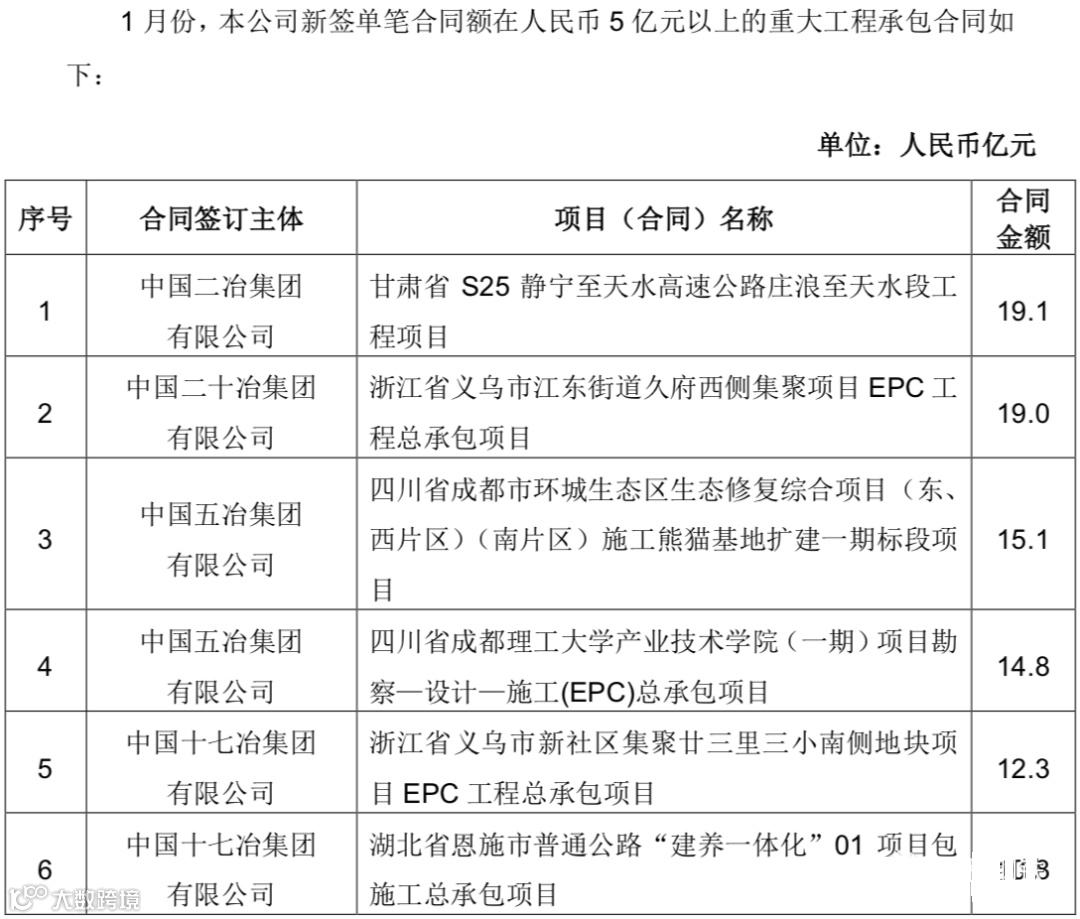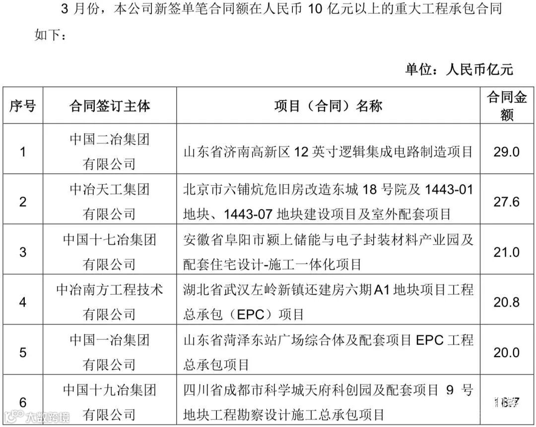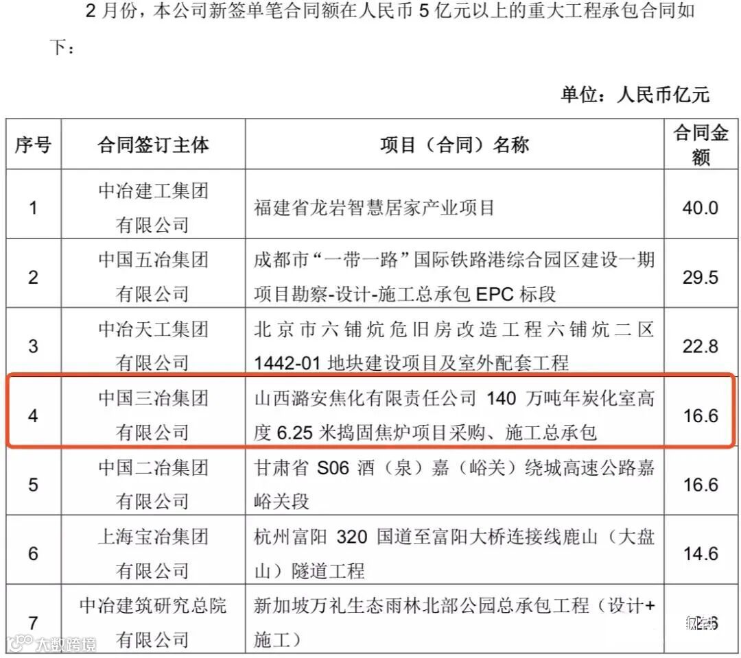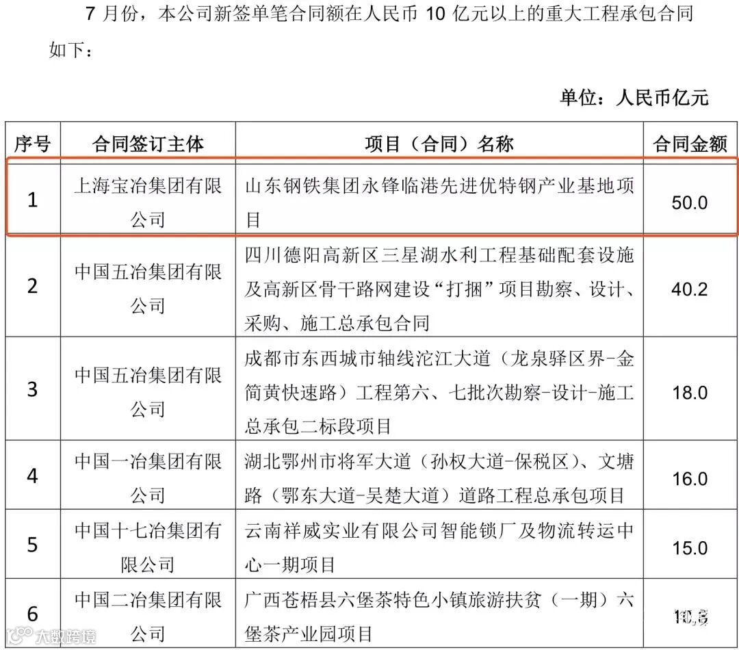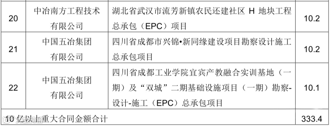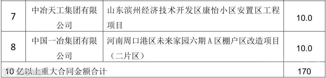 中国中冶2020年1-9月新签合同额人民币7009.2 亿元,较上年同期增长31.1%,其中海外合同人民币 139.3 亿元。其中10亿元以上的重大钢铁工程承包合同19个,合同金额高达372.6亿!具体如下: