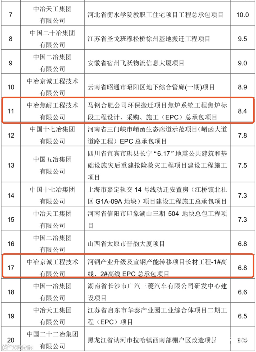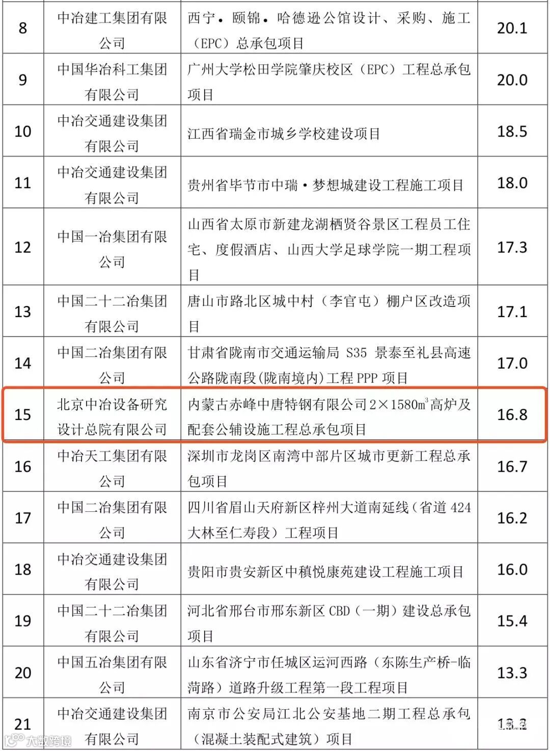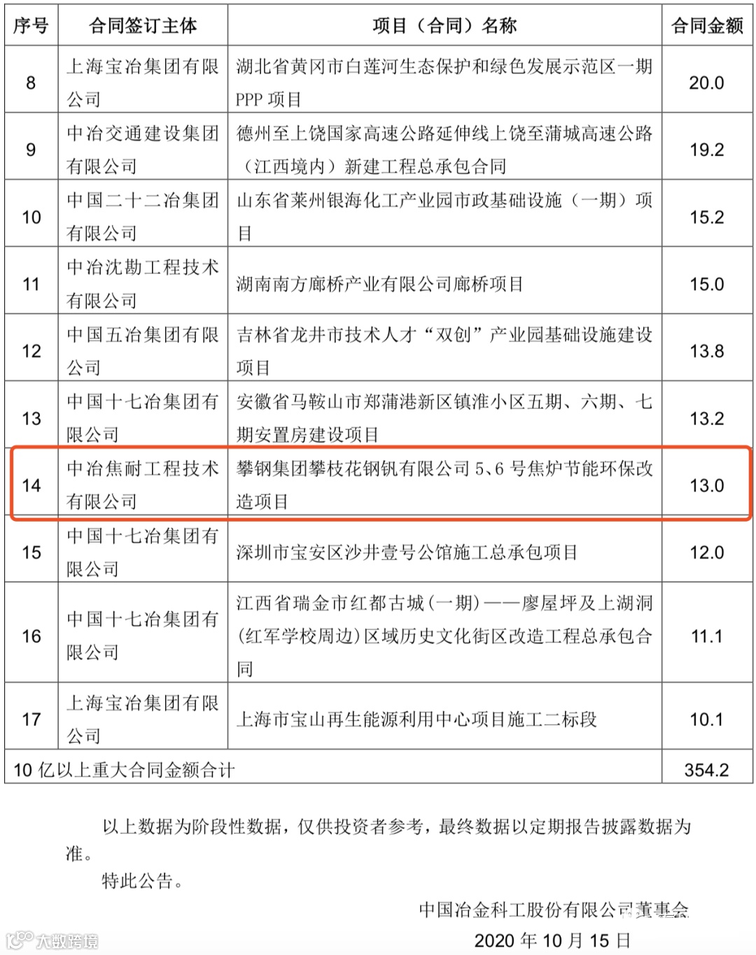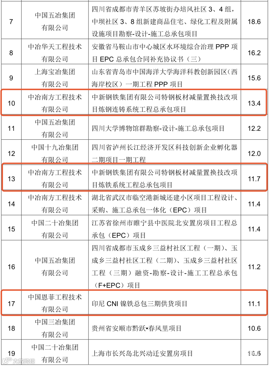 中国中冶2020年1-9月新签合同额人民币7009.2 亿元,较上年同期增长31.1%,其中海外合同人民币 139.3 亿元。其中10亿元以上的重大钢铁工程承包合同19个,合同金额高达372.6亿!具体如下: