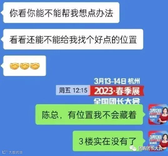 看到我们展位要卖完了,就问:能不能想办法帮我找个好点的展位?