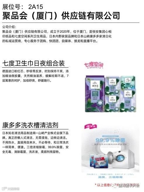 聚品会(厦门)供应链有限公司,成立于2020年,位于厦门,是恒安集团心相印纸品和七度空间系列卫生用品,日本内野家居品牌和日本山崎康多多家清日化的私域运营商,专心