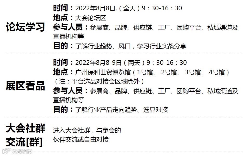 参展:主要为了链接资源,链接渠道,获得合作机会,快速进入渠道产生合作。