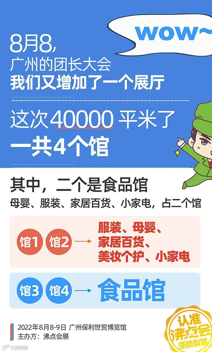 来自沸点会展的消息,本届8月8广州全国团长大会期间的全国帮卖团长选品会,团长展位已经确定过半,全是圈内厉害的大团长们,所以,本次全国团长大会的展商们,准备好推品素材,8月8-9日,全国团长选品会期间,积极推品,多多上架吧!