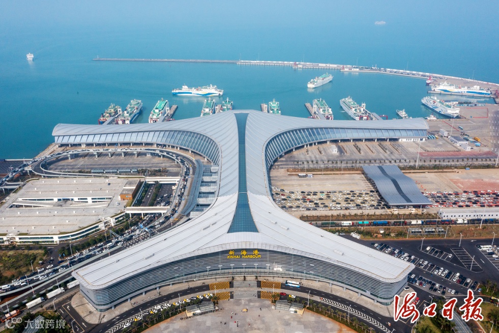 海口新海滚装码头客运综合枢纽站工程项目造型酷似“鲲鹏展翅”,总占地面积93万平方米,总建筑面积21万平方米,相当于29座标准足球场的面积,是一座集港口候船、登离船、口岸查验、枢纽商业和交通“零换乘”等功能于一体的现代综合交通枢纽,也是目前全国最大的港口客滚综合枢纽。