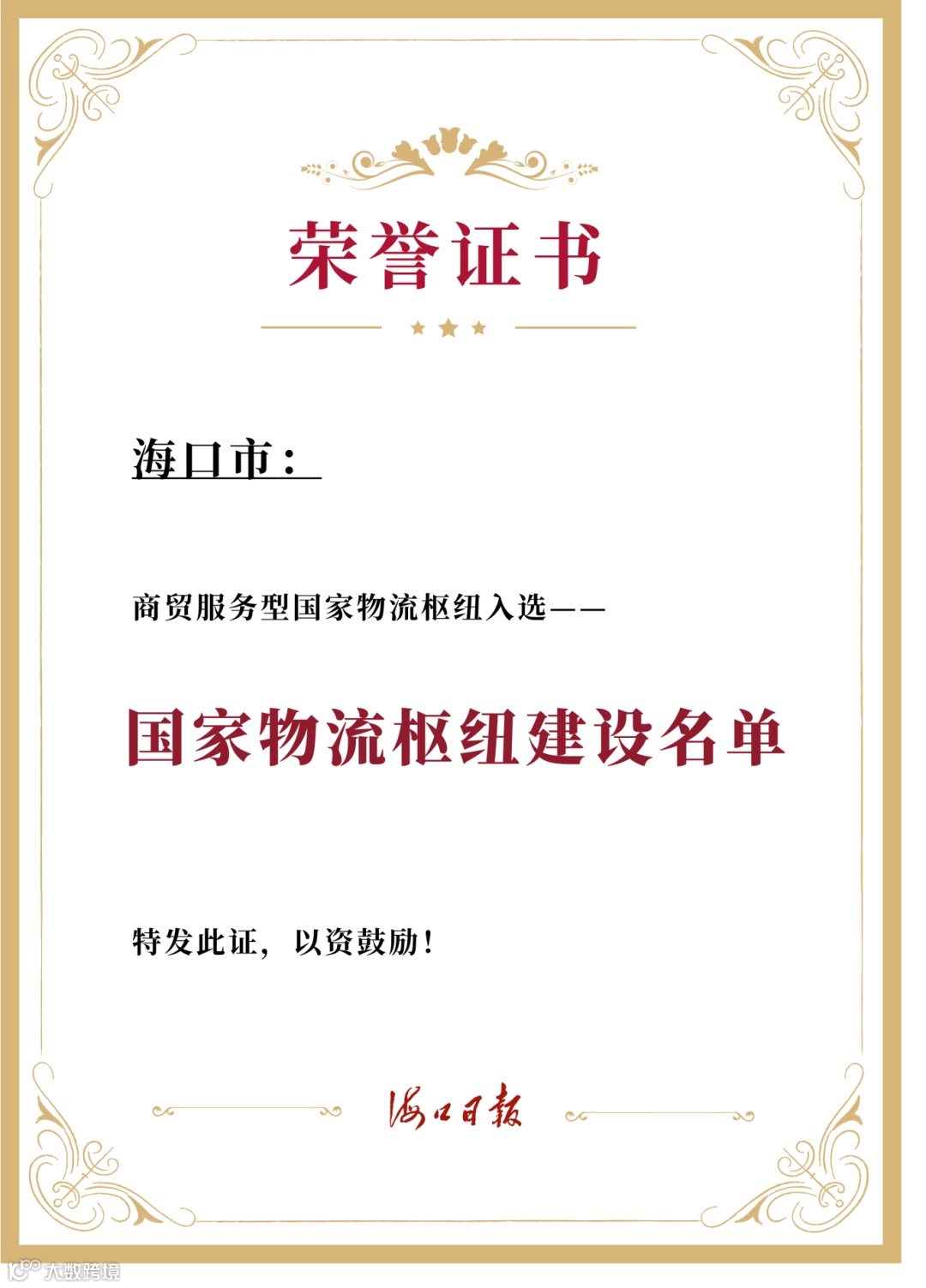 10月份,国家发展改革委研究确定并发布新一批26个国家物流枢纽建设名单。其中,海口商贸服务型国家物流枢纽入选。
