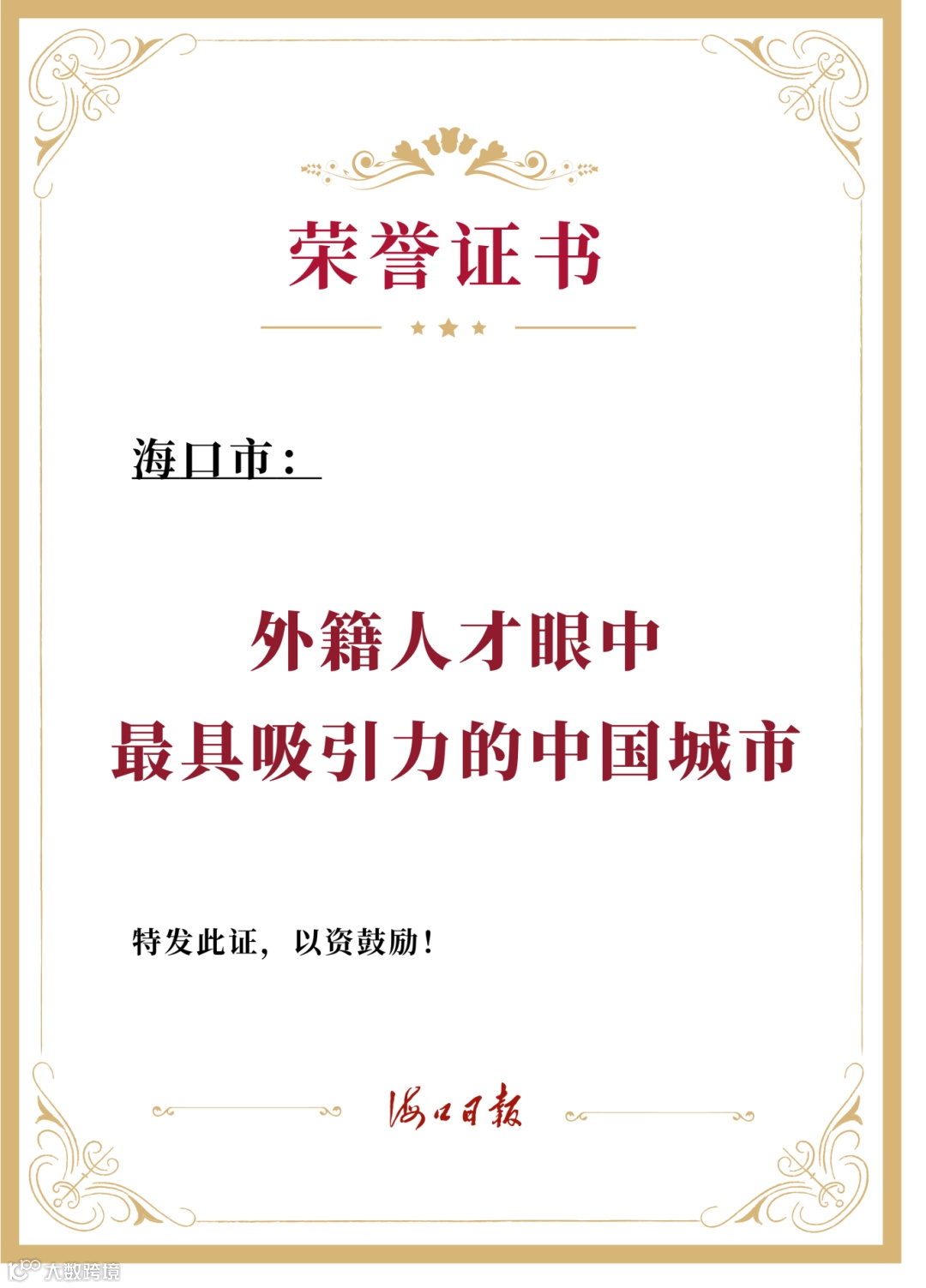 10月份,2024杭州国际人才交流和项目合作大会开幕式上,人社部国外人才研究中心发布2023年度“魅力中国—外籍人才眼中最具吸引力的中国城市”主题活动成果,时隔五年,海口再次入选“魅力中国—外籍人才眼中最具吸引力的中国城市”。