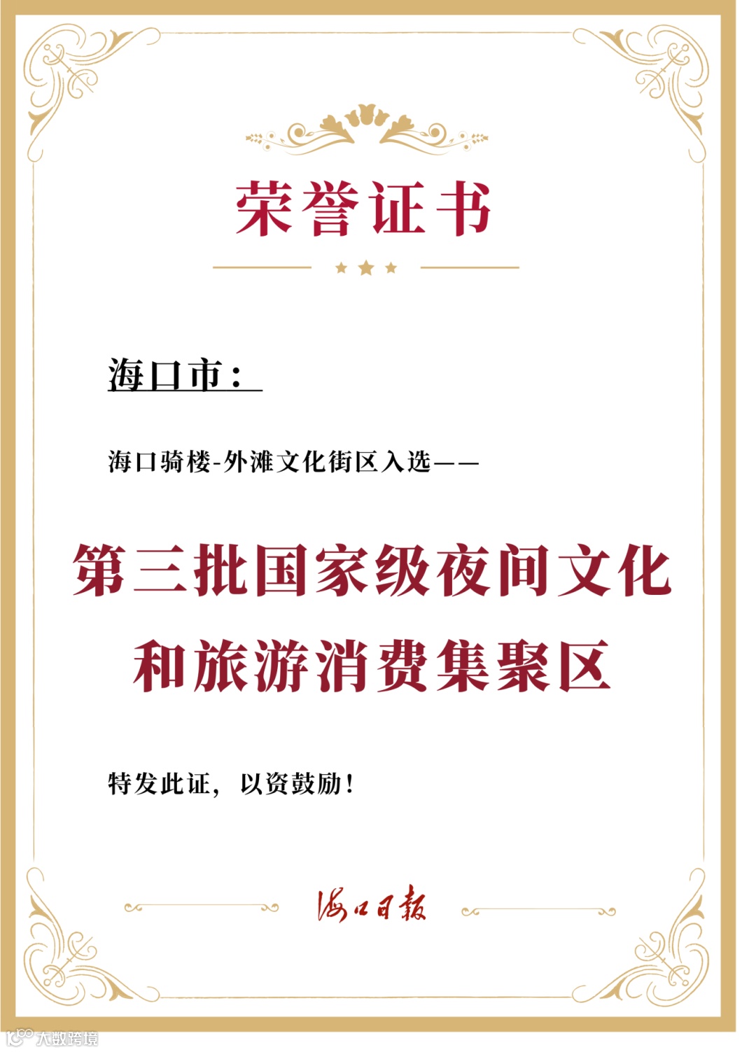 1月25日,文化和旅游部确定第三批国家级夜间文化和旅游消费集聚区名单,其中,海口骑楼-外滩文化街区成功入选,再次获得国家级殊荣。