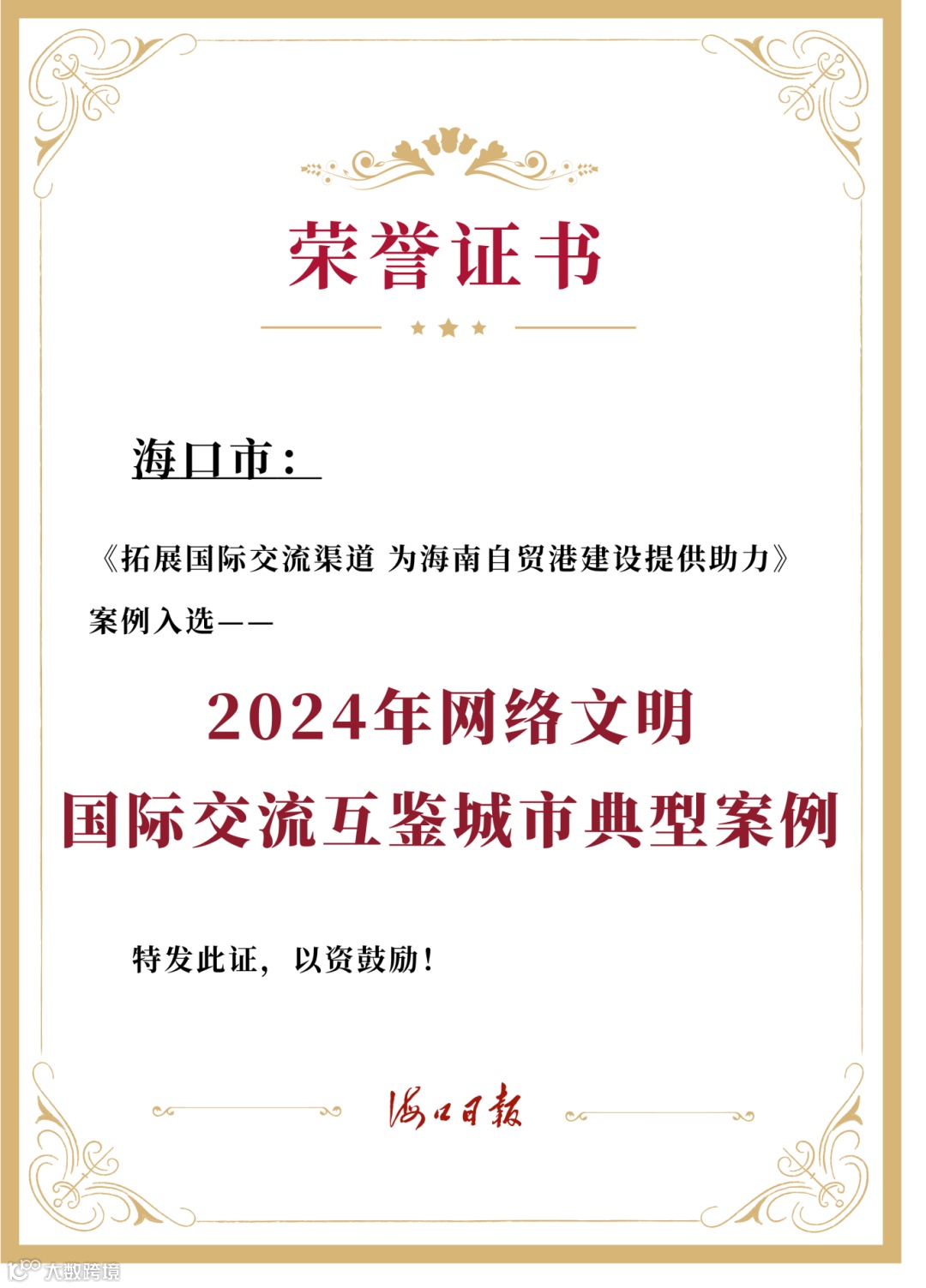 8月29日,在2024年中国网络文明大会网络文明国际交流互鉴分论坛上,“2024年网络文明国际交流互鉴城市典型案例征集活动”成果正式发布,50个典型案例脱颖而出。其中,海南省海口市《拓展国际交流渠道 为海南自贸港建设提供助力》案例成功入选。
